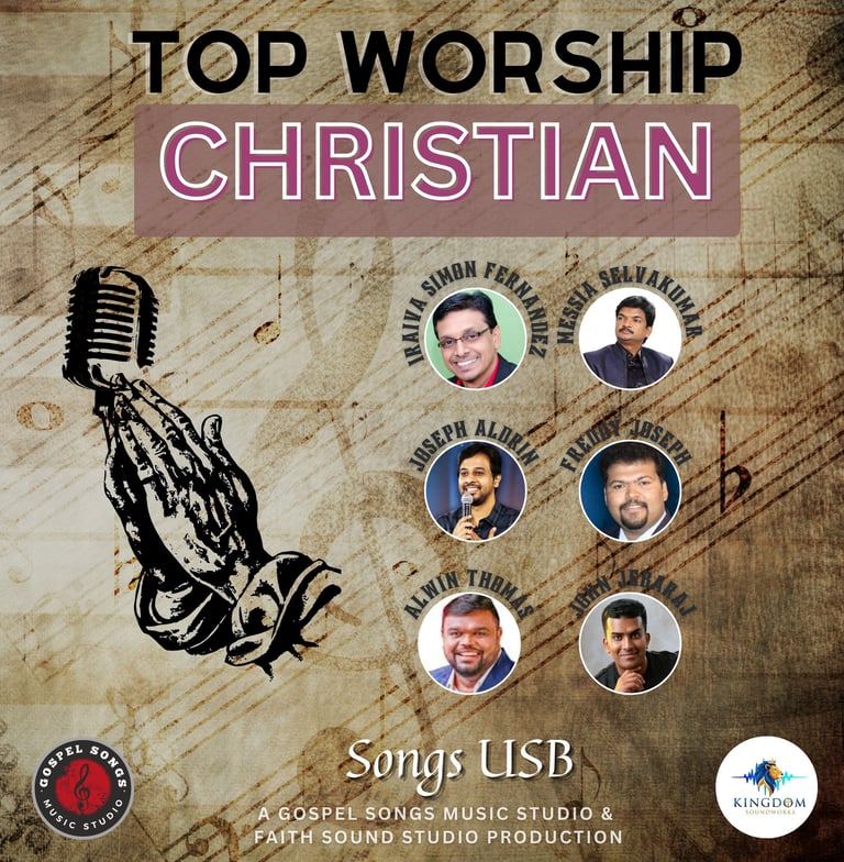 Unleash the Power of Worship with our Top Tamil Christian Worship Songs USB! This ultimate collection brings together the most beloved melodies from renowned artists like Pastor John Jebaraj, Pastor Alvin Thomas, Iraiva Ministries, Pastor Freddy Joseph, Pastor Messiah Selvakumar, and Joseph Aldrin, all in one convenient and portable package.